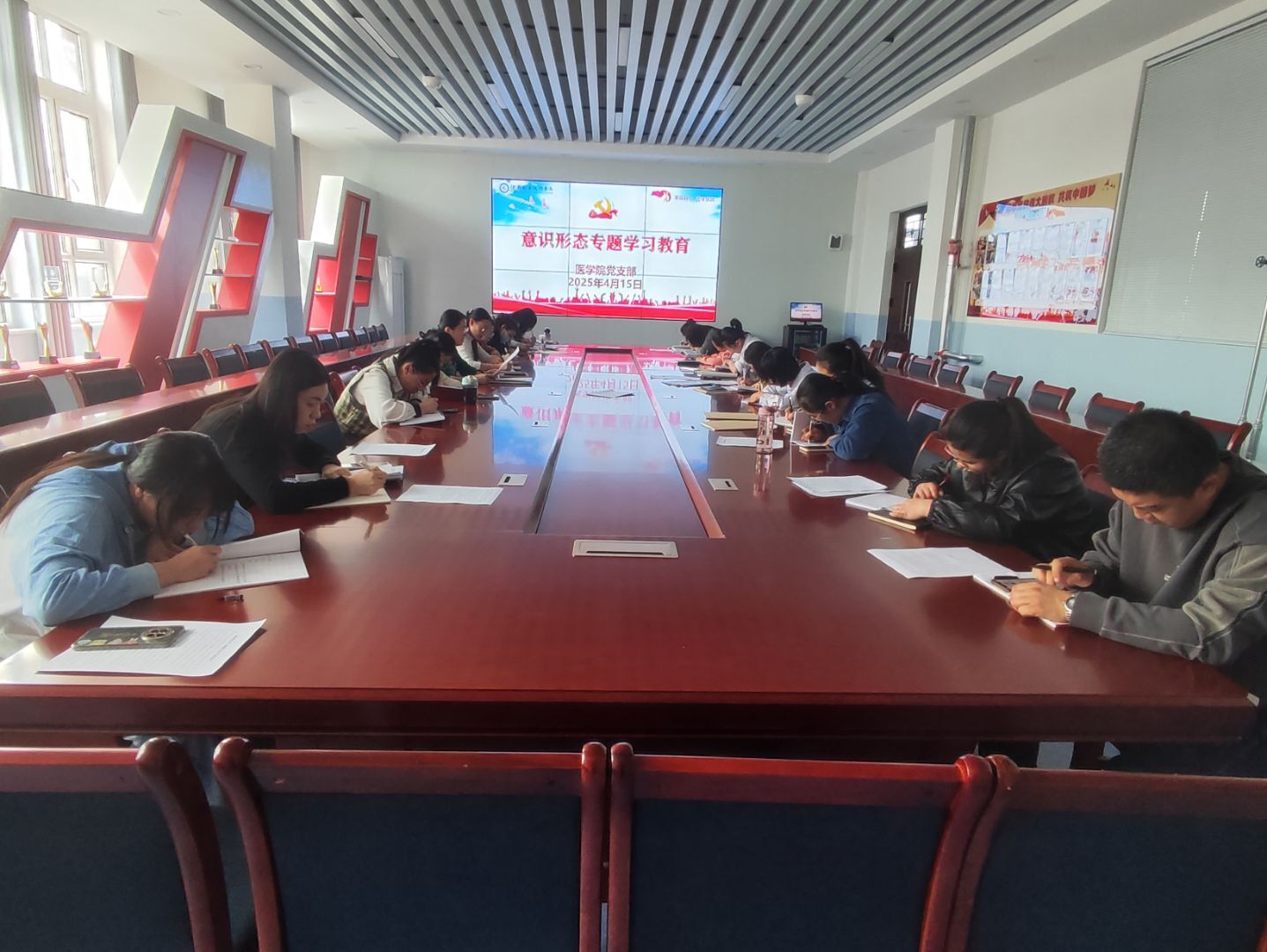 为筑牢意识形态安全防线,提升防范化解意识形态风险能力,4月15日,医学院在弘远楼A501会议室召开了意识形态专题会议。会议由医学院党支部副书记段国萍主持,全体教职工参加。
