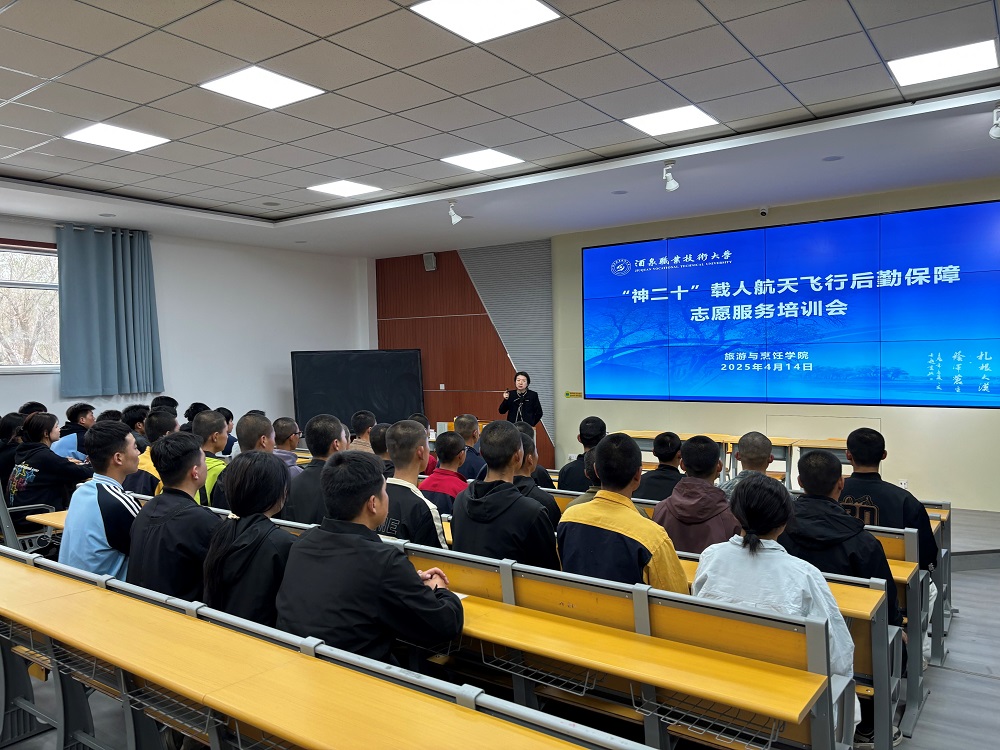 为高质量服务即将启幕的“神二十”载人航天飞行任务,4月14日下午,我院隆重举办后勤保障志愿服务专题培训会。酒店管理与数字化运营系胡文婷老师受邀主讲,75名经过班级遴选、学院初审、相关用人单位政治审查选拔出的志愿者全程参与,以专业态度开启航天保障“预备课”。