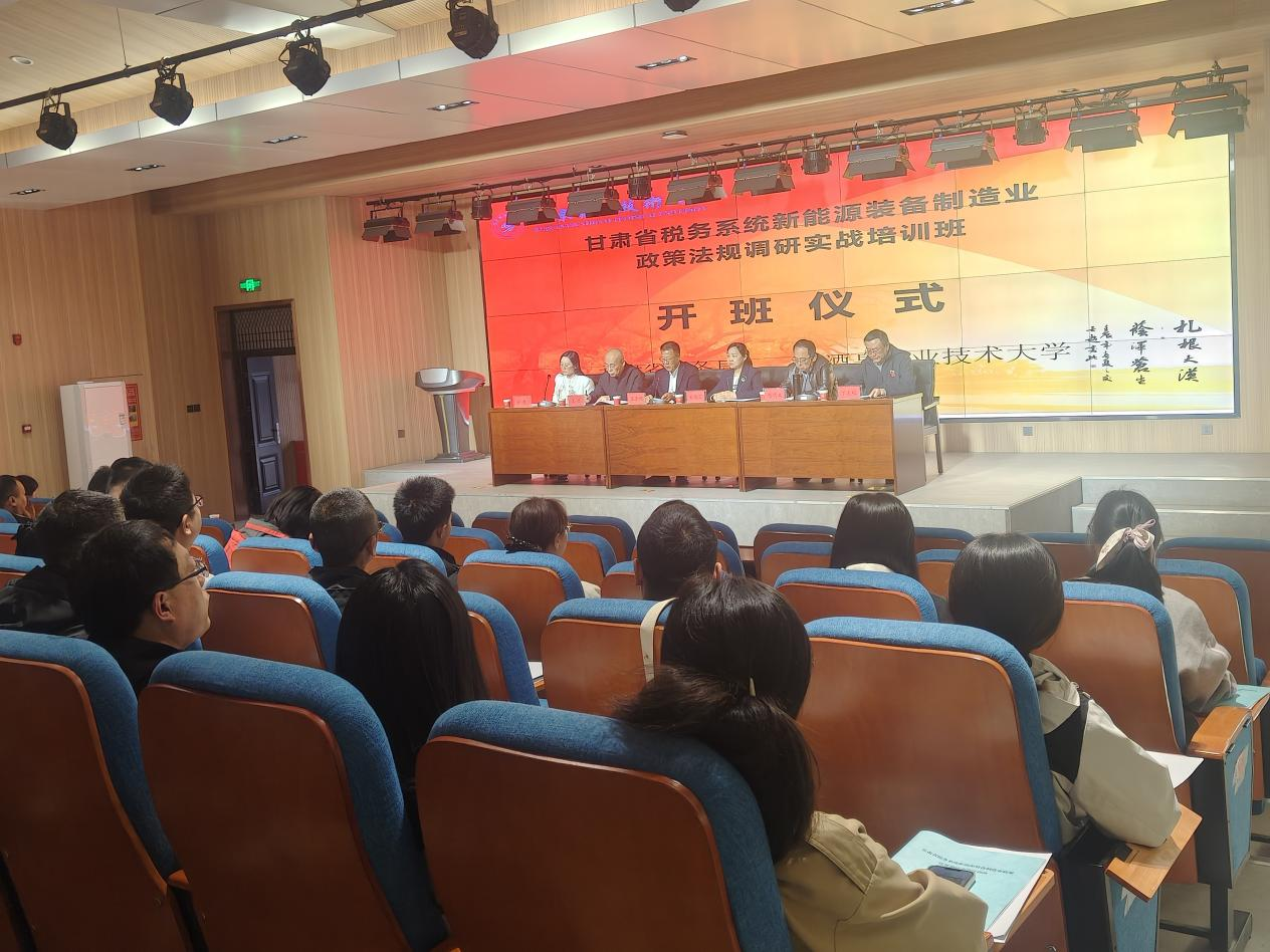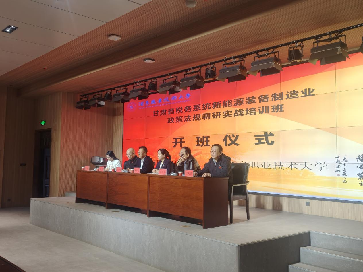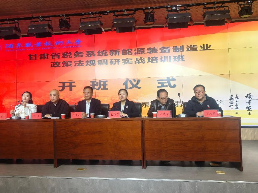 2025年4月15日上午,税务系统新能源装备制造业政策法规调研实战培训班开班仪式在酒泉职业技术大学隆重举行。本次培训由国家税务总局甘肃省税务局主办、酒泉职业技术大学经济管理学院承办,来自全省各区县税务系统的50名业务骨干参加为期三天的专题培训。