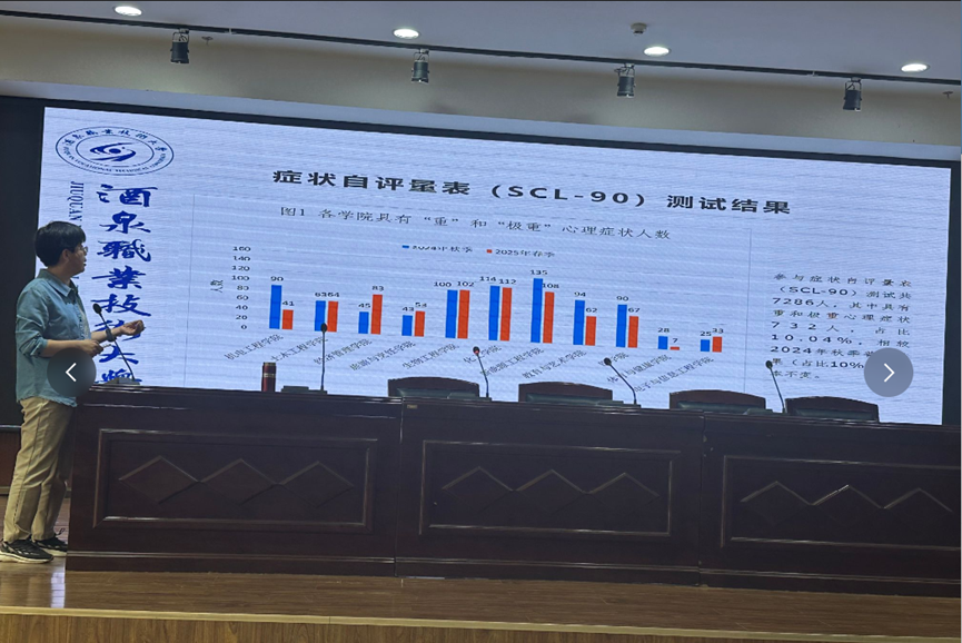 培训以2025年春季学生心理健康普查数据为切入点,聚焦当前学生心理动态中人际关系和抑郁情绪两大核心问题,通过可视化图表与真实案例对比,引导参训教师建立“动态追踪档案”,从日常观察、宿舍走访、学业表现三个维度构建预警机制,为一线教育工作者提供“即学即用”的解决方案。将心理危机干预从“事后响应”转向“事前洞察”。