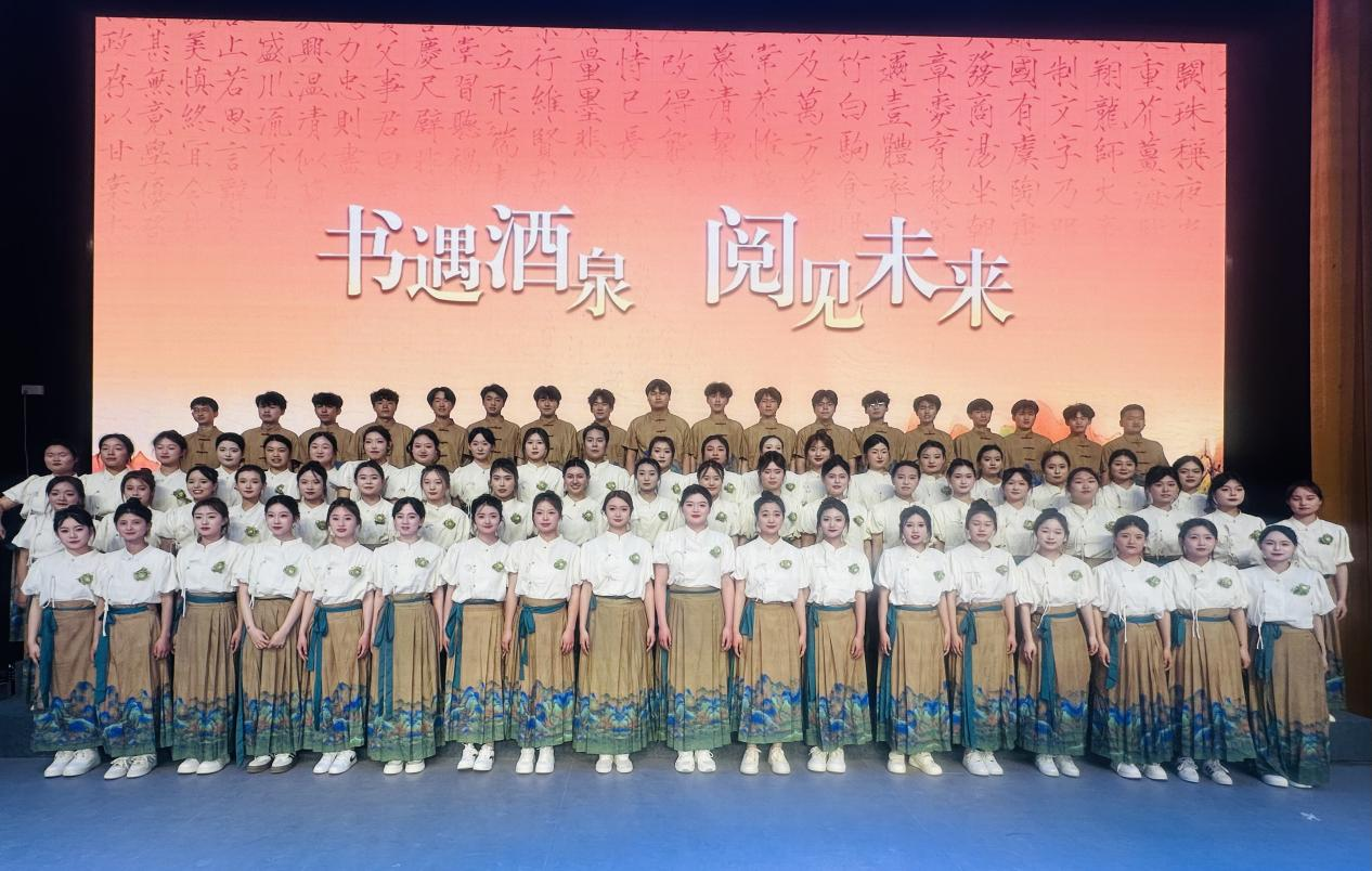 为深入学习贯彻习近平文化思想,强化阅读引领,全面推动全民阅读与文化传承深度融合。4月22日晚,由中共酒泉市委宣传部主办的“书遇酒泉 阅见未来”主题晚会在酒泉1969文化艺术创意园剧场精彩上演。教育与艺术学院99名学生参与演出,以精彩的表演为这场文化盛会增添了一份独特魅力。