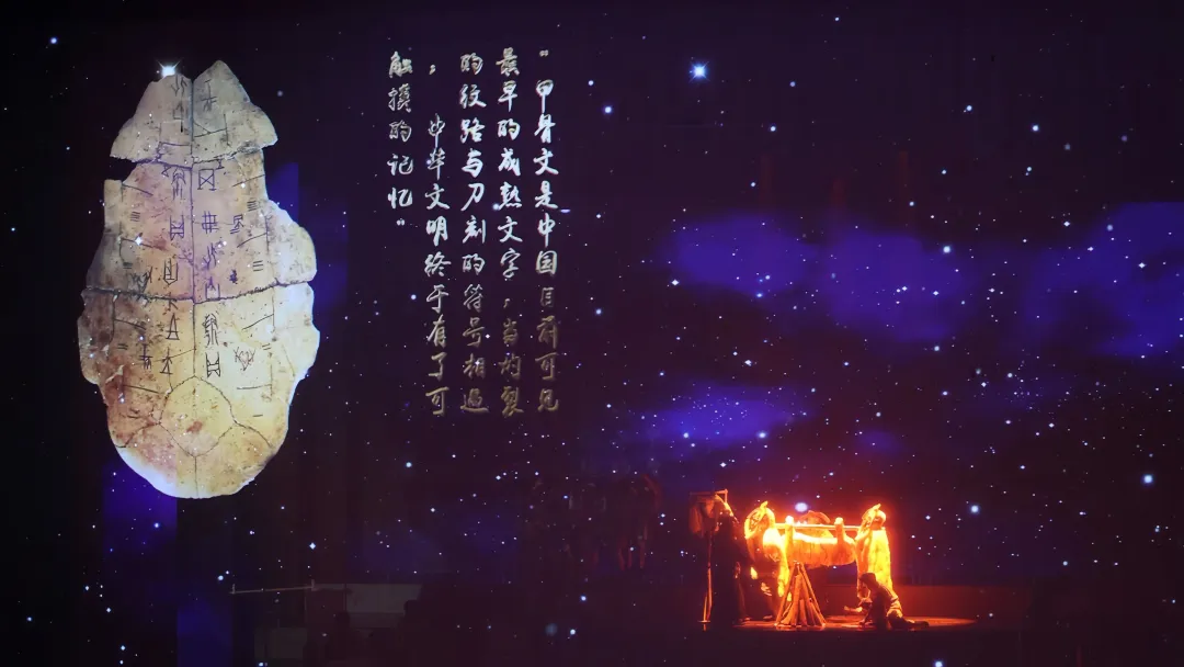 整场晚会分为《书启新篇》《书遇酒泉》《书与酒泉》《书呈经典》《书润家园》5个篇章展开,学院18名学生参与并出演了第一篇章“书启新篇”中的《序》。运用纱幕投影等舞美技术手段,以剧目表演的形式,从人类起源讲起,将书籍文明演进史与酒泉地域文化深度融合,演员们通过肢体动作诠释了中华文明发展的立体叙事体系,赢得了现场观众的热烈掌声。