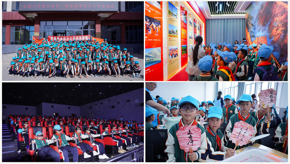5月7日,酒泉市东苑学校258名三年级小朋友来到酒泉职业技术大学研学实践。小朋友们参观了爱国主义教育系列展馆,在5D观影中心观看了《太空快递》《长征精神》等主题教育影片,学习制作了非遗手工漆扇。研学过程中,各位小朋友仔细聆听、认真记录,表现出强烈的求知欲和浓厚的学习兴趣。