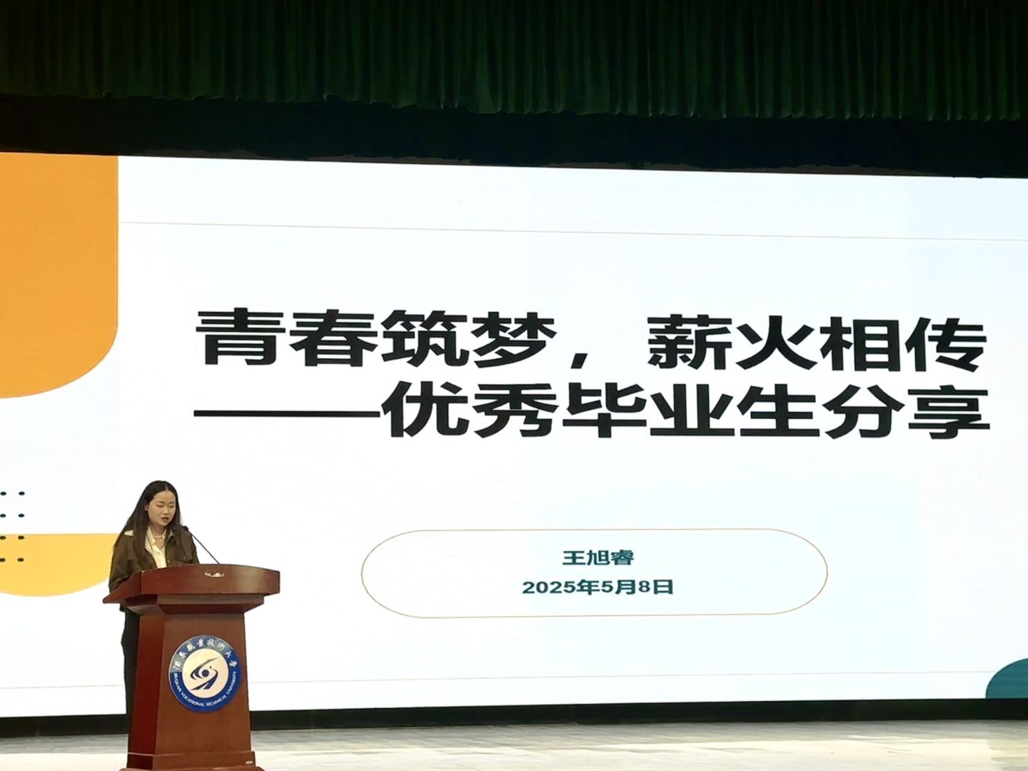 2019级口腔技术专业毕业生闫炳杰分享了他从学生到技术骨干的成长历程:"每一颗义齿都需要18道工序的精心打磨,就像我们的职业生涯,需要精益求精的工匠精神。"2022级张新玲则用"三次省赛一等奖""国赛三等奖""专升本推免成功"的奋斗经历,诠释了"技能成才"的无限可能。