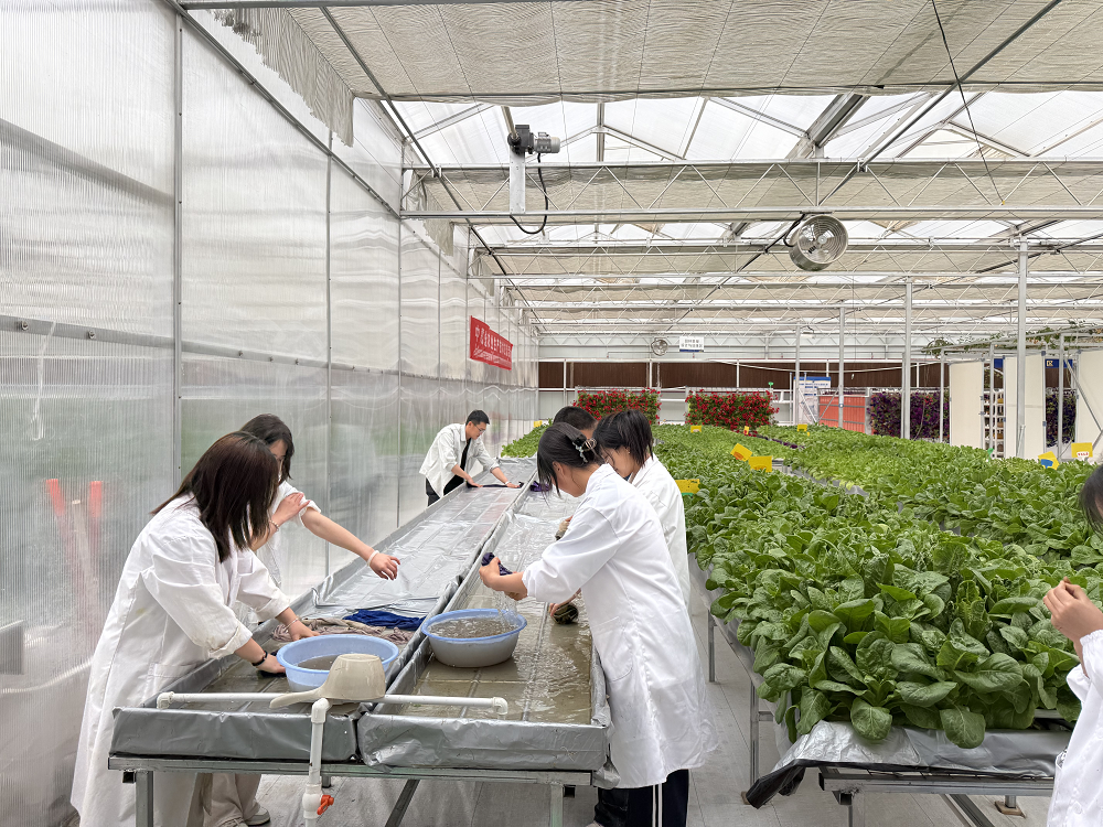 现代农业系师生共同完成水培芹菜的收割包装工作,并进行采收水培苗床的清理消毒工作。同时,两位教师讲解了无土栽培具有脱离土壤限制的优势,极大地扩展了农业生产的空间,生产技术的优势拓宽了现代化农业发展道路。此次活动聚焦教育强国建设目标,深入推进职普融通、产教融合,集中展示现代农业技术,培养学生的可持续发展意识和现代化产业技术创新意识。同时为各专业师生搭建交流平台,促进不同专业背景师生更加了解农业现代化科研技术成果。