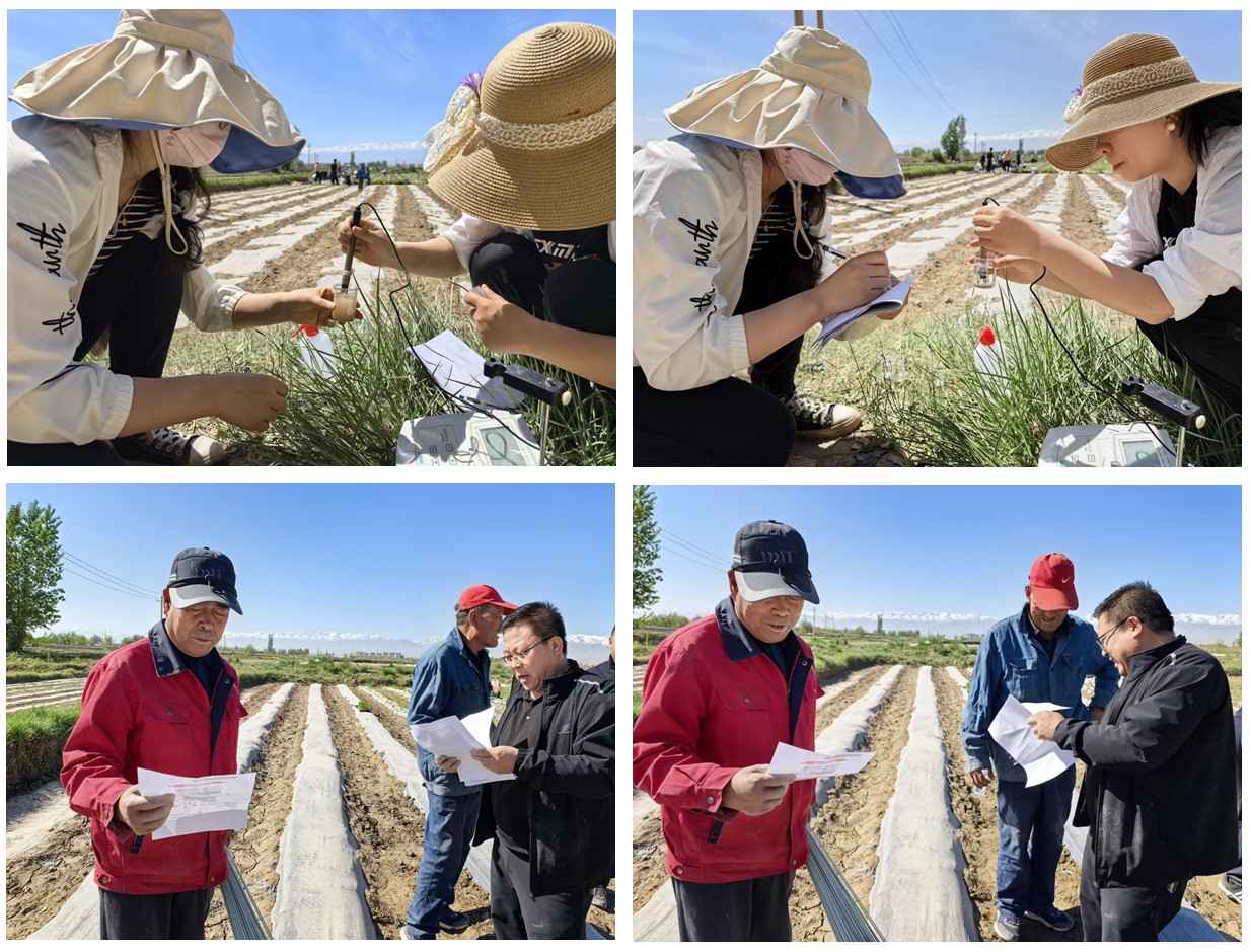 劳作之余,化工学院环境专业教师利用携带的专业设备,对丁家闸村农田的土壤、灌溉水源进行了质量监测。她们仔细采集土壤样本,测量土壤酸碱度、养分含量,检测灌溉水的重金属含量、酸碱度等指标,并结合检测数据,与农户探讨土壤改良和合理灌溉的方法,为丁家闸村的农业绿色发展提供了科学依据。