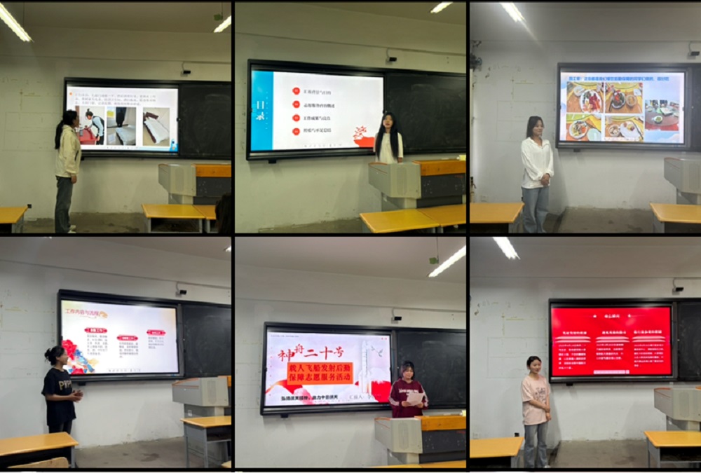 5月19日晚,全院在校班级同步开启“旅游七点半”特色晚自习活动。45名参与过神舟二十号载人航天发射后勤保障任务的志愿者化身“流动讲师”,通过“情景再现”“互动问答”等形式,还原后勤保障现场。这场跨越专业壁垒的分享,在学子心田既种下对航天事业的向往,更埋下对旅游职业的敬畏。