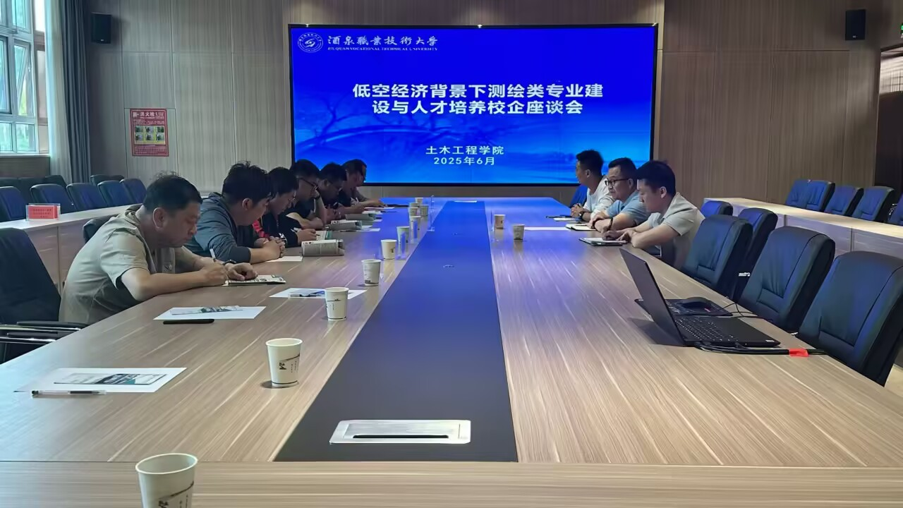 为加强校企合作,共同探索低空经济背景下测绘类专业建设与人才培养的新路径、新方向,6月8日,土木工程学院邀请2025年酒泉市职工职业技能竞赛(首届工程测量大赛)参赛企业在弘毅楼C103召开了测绘类专业建设与人才培养校企座谈会。