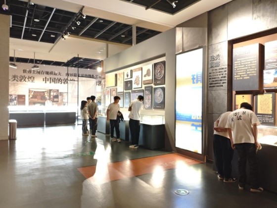酒泉市博物馆作为酒泉市的文化名片,承载着丰富的历史记忆与文化内涵。学员们穿梭于“丝路重镇”“石窟瑰宝”“航天辉煌”等主题展厅,从马家窑文化的彩陶罐到敦煌壁画的复刻珍品,从汉简文书的历史印记到航天事业的珍贵实物,每一件文物都是时光的注脚,串联起酒泉作为东西方文明交融枢纽的传奇历程。