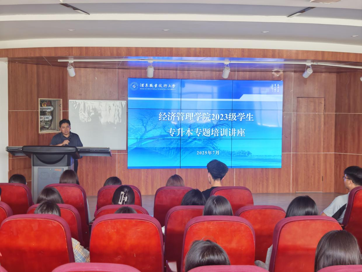 2025年7月10日,经济管理学院院长张晓彬在经世楼胡杨大讲堂为2023级学生开展了专升本专题讲座,解读专升本相关政策,现场为学生答疑解惑。