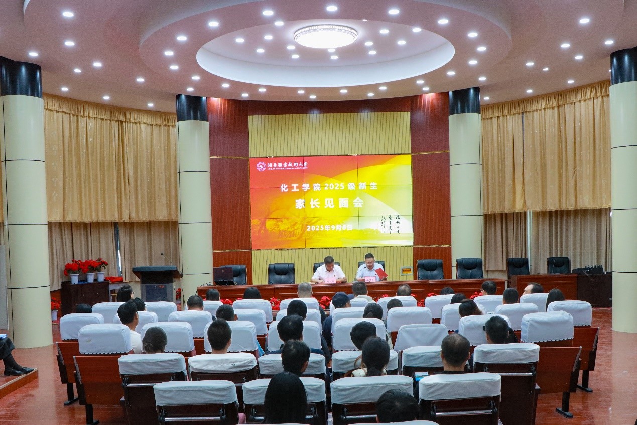 院系动态 > 正文金秋九月,丹桂飘香。为增进家校沟通、凝聚育人合力,帮助新生家长全面了解学院办学特色与育人体系,9月8日晚,化工学院在逸夫报告厅举办 2025 级新生家长见面会,近百名新生家长齐聚一堂,共话育人蓝图,携手助力新生成长。化工学院党支部副书记、院长孔祥波、2025 级辅导员、班主任、家长及学生代表出席见面会,会议由副院长邢建伟主持。