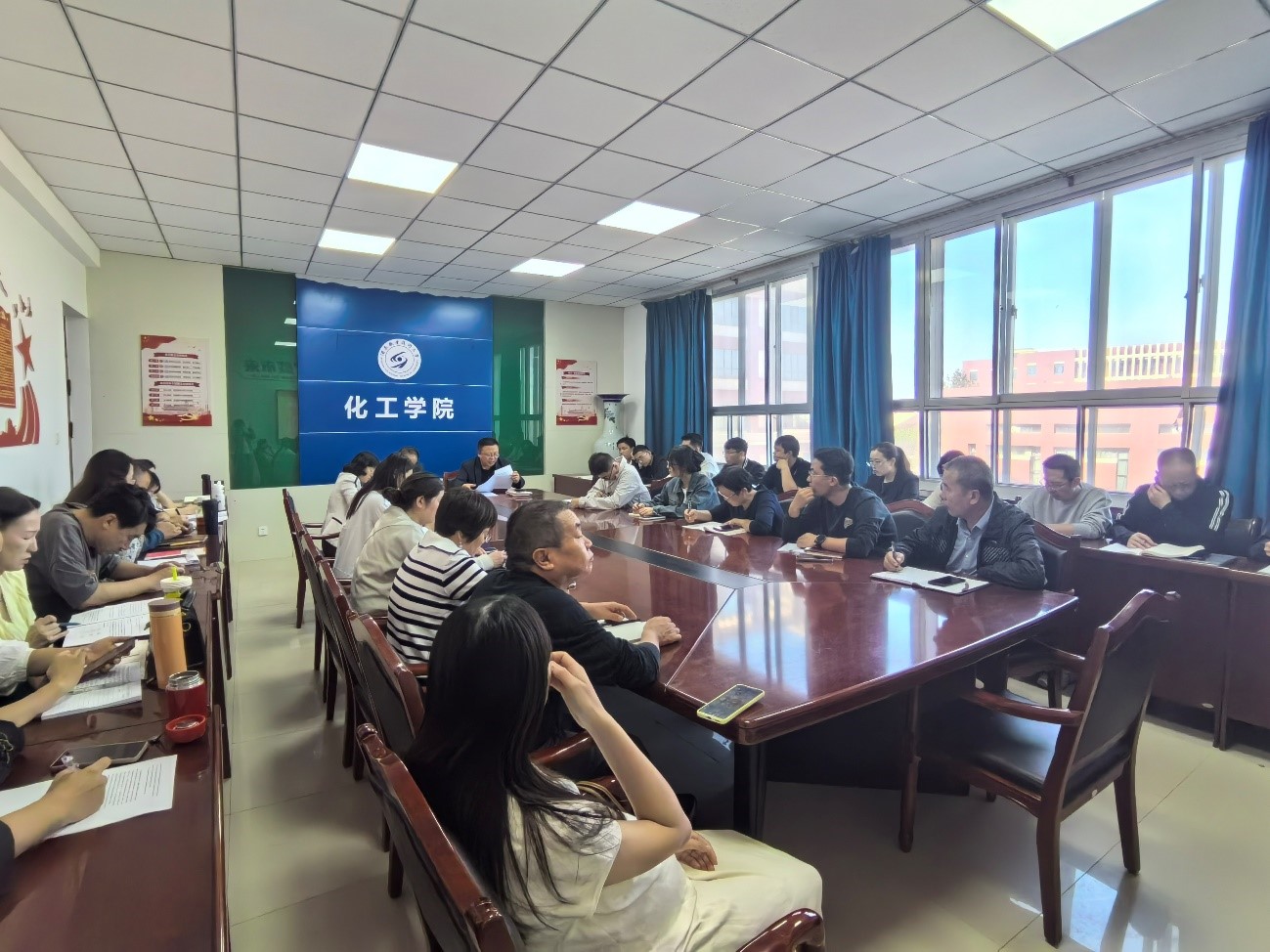 9月23日下午,化工学院在逸夫楼二楼会议室召开深入贯彻中央八项规定精神学习教育总结会议。学院党支部书记白锦川主持会议,全体党员、教师参会。