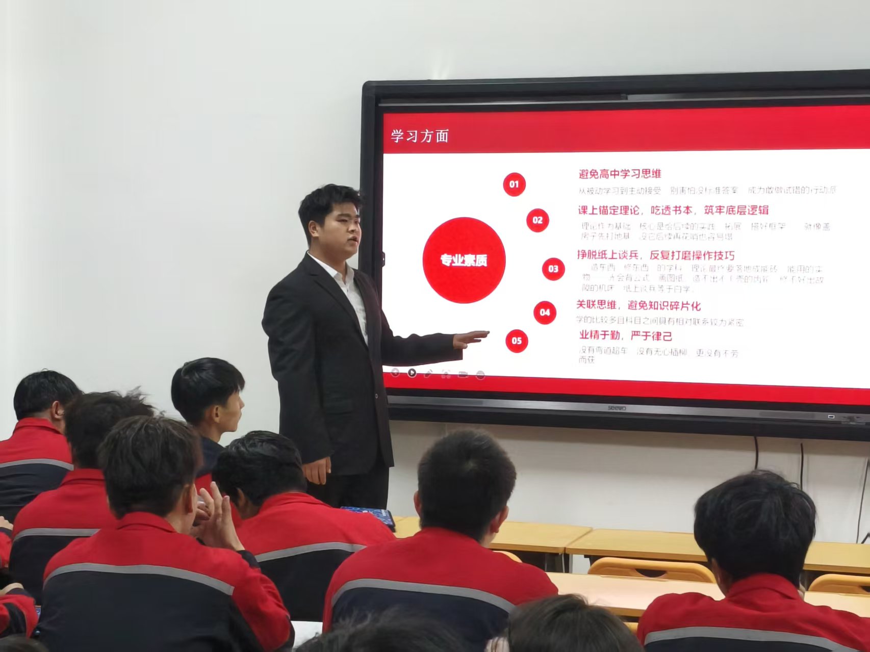 院系动态 > 正文为充分发挥优秀学子的榜样示范作用,引领学生明确学业方向,科学规划大学生活,11月5日-6日,机电工程学院组织获得国家奖学金的六名优秀学子,在2025 级各班开展 “优秀学子经验分享”宣讲会。来自2024级的六名优秀学子结合自身成长经历,围绕学习经验、技能竞赛、实践成长三大核心板块,用真实案例与实用技巧,为同学们送上了一场干货满满的成长分享盛宴。