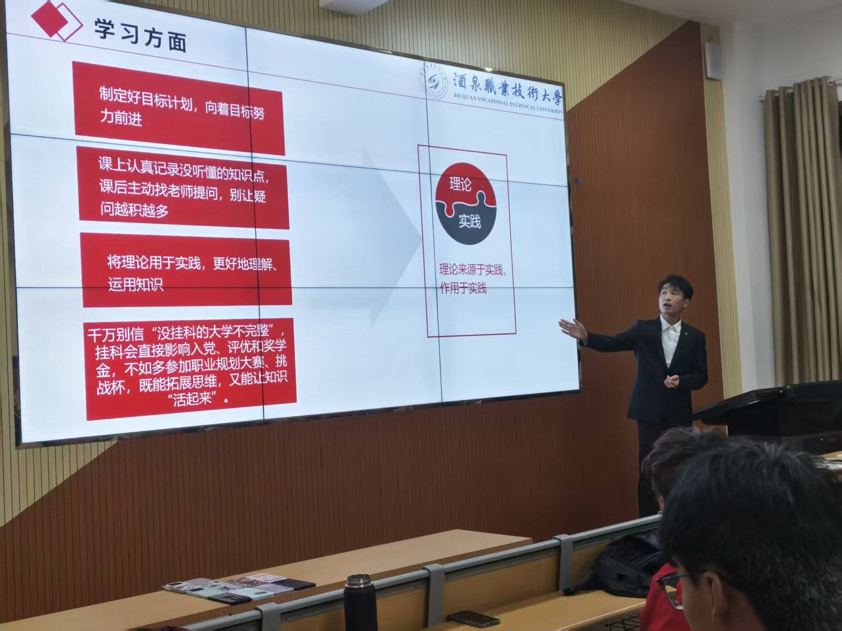 技能大赛是锤炼专业本领、提升实践能力的重要平台。在技能分享环节,获得2025年中国国际大学生创新创业大赛甘肃省分赛金奖的罗浩飞和获得甘肃省职业院校技能大赛汽车营销赛银奖的赵爱平,从团队组建、选题立意,到技术攻关、作品打磨,再到现场展示与答辩,用真实的案例向同学们展示了将理论知识转化为实践成果的完整路径。他们鼓励同学们勇敢走出舒适区,从校级赛事入手,积累参赛经验,在实践中提升动手能力与问题解决能力,极大地激发了同学们参与竞赛的兴趣与热情。