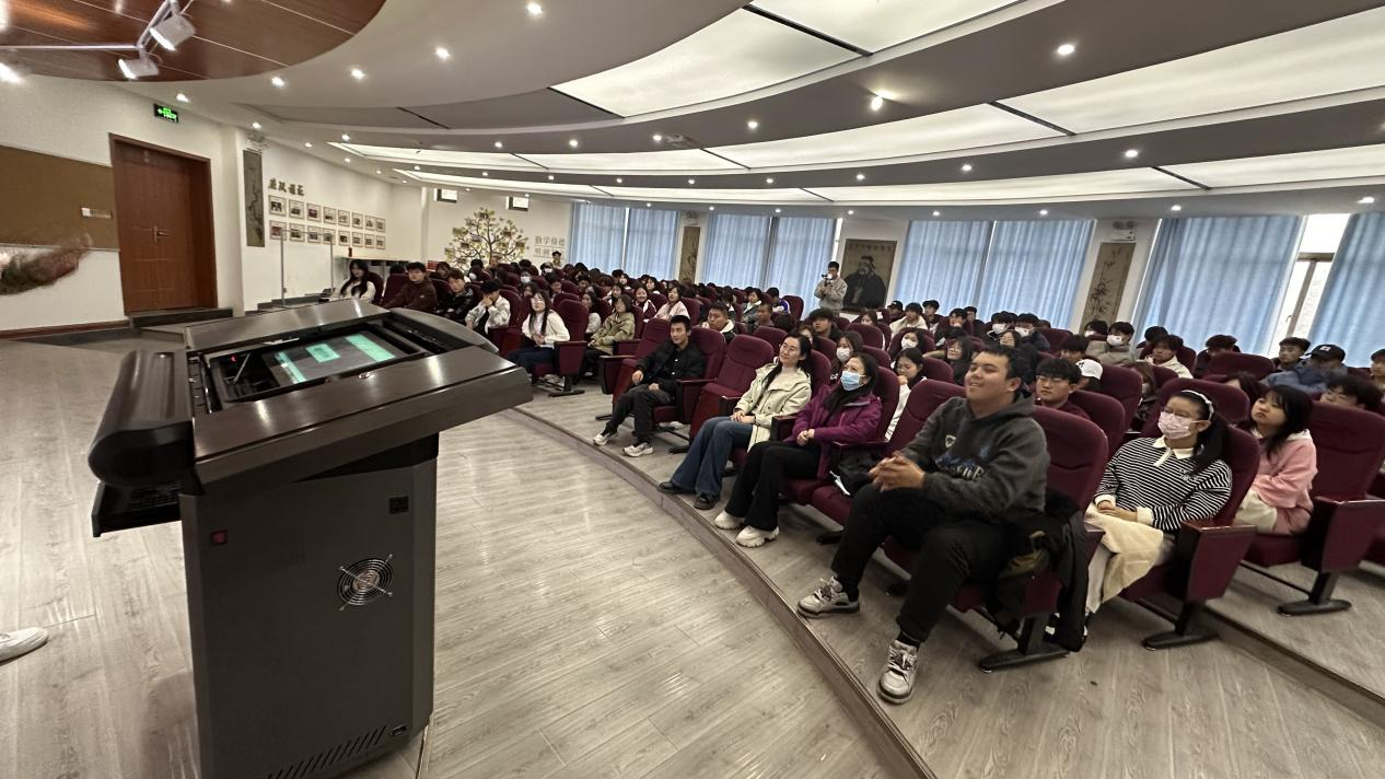 为深入贯彻落实《关于组织开展酒泉职业技术大学第一届教学主题月活动的通知》文件精神,2025年11月6日下午,经济管理学院在胡杨大讲堂举办直播电商专题培训讲座。培训由副院长杜静主持。工商管理电子商务专业全体师生及优选直播团队成员共同参与。
