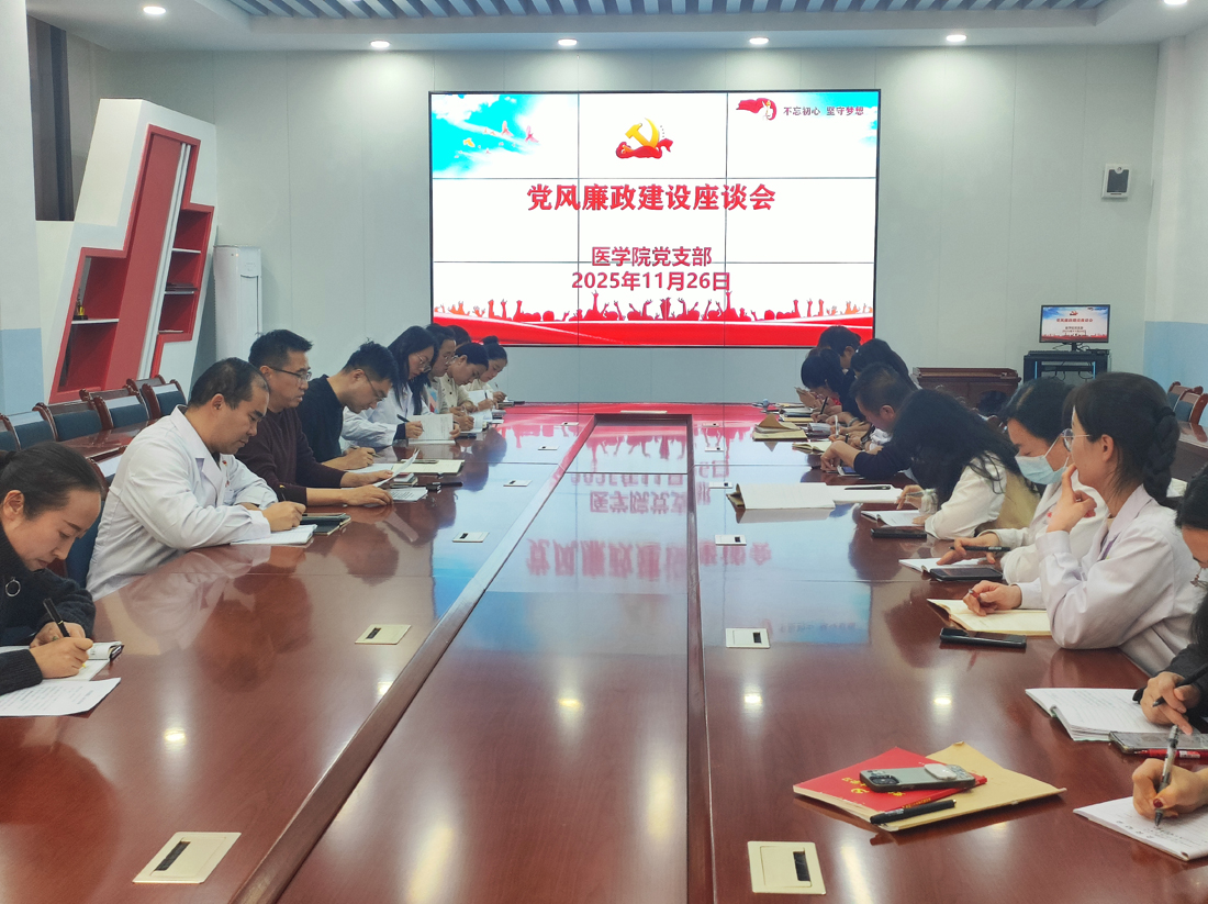 为深入贯彻落实全面从严治党要求,进一步强化党风廉政建设,营造风清气正的育人环境,11月26日下午,医学院组织召开了党风廉政建设座谈会。学院领导班子成员、全体教职工齐聚一堂,共同探讨党风廉政建设新举措,为学院高质量发展提供坚强纪律保障。
