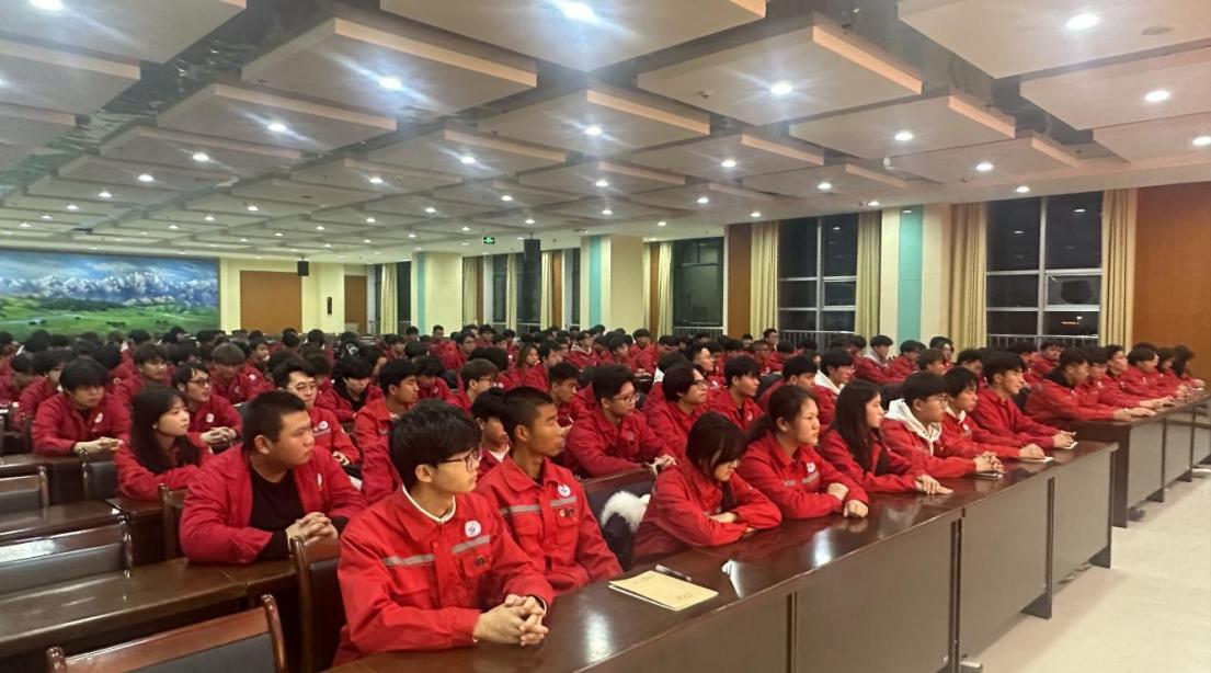 2025年12月4日晚,在学校图书馆四楼多功能厅新能源工程学院团员大会顺利召开。新能源工程学院党支部书记许新兵、副院长张振伟出席会议,全院420余名团员参会,大会由学院团委书记张昭主持。