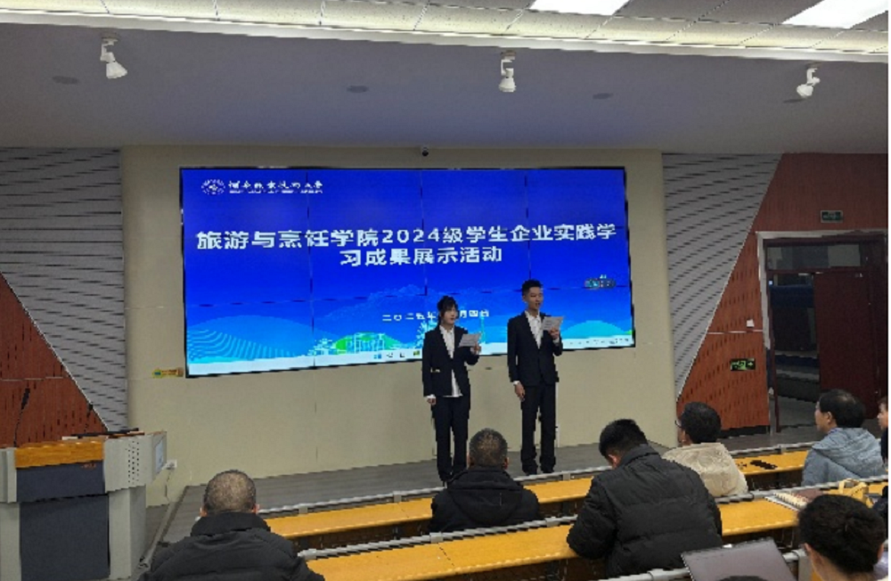 为强化专业技能,提升应用能力,依据2024参各专业人才培养方案,旅游与烹饪学院2024级各专业于9月25-10月25日赴敦煌文博会、额济纳旗金源和天下文化旅游股份公司等多家企业开展了为期一个月的深度企业学习活动。为进一步巩固学习成果,交流心得体会,12月5日下午在行知楼西阶梯教室举行了“知行合一汲新知,汇报分享促成长“总结分享汇报会,全面展示了此次企业学习的丰硕收获。学院领导、专业教师及全体参与学生参加了报告会。
