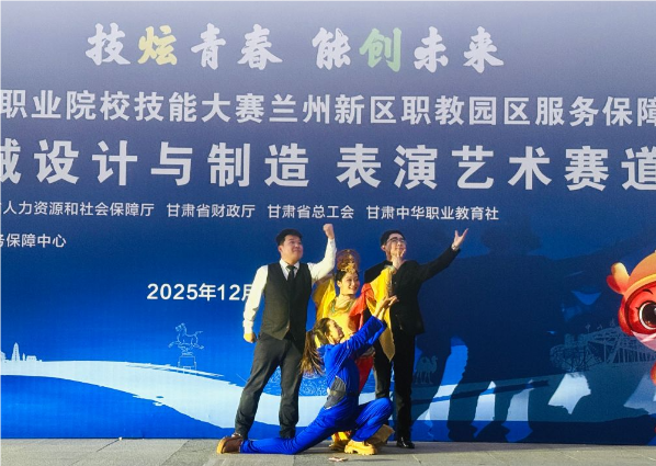近日,2026年甘肃省职业院校技能大赛圆满落下帷幕。由郭真、马克斯文两位老师指导,2025级表演艺术班新生郑美玲、赵春春、张莉、杨金辉组成的参赛队伍,在表演艺术赛道全省33支参赛队伍的激烈角逐中脱颖而出,斩获该赛项金牌,并顺利获得世界职业院校技能大赛参赛资格。