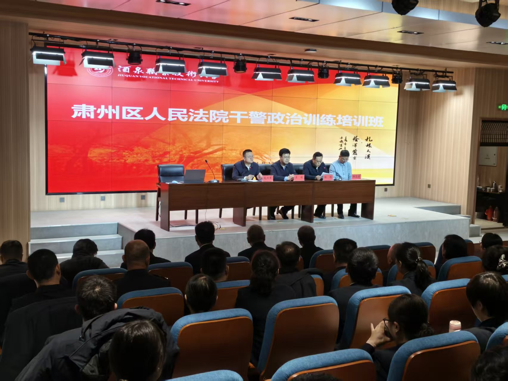院系动态 > 正文寒冬腊月砺初心,笃学实干启新程。1月19日酒泉市肃州区人民法院干警政治训练培训班在我校正式开班。此次培训旨在进一步强化干警政治素养、筑牢法治信仰、提升履职能力,为维护社会公平正义、护航肃州区高质量发展提供坚实司法保障。肃州区人民法院院长段利军,酒泉职业技术大学党委委员、副校长杨明等领导出席开班仪式,北京大成律师事务所高级合伙人韩友谊、省委党校教授王锐等授课专家及法院全体干警参加活动,开班仪式由肃州区人民法院院长段利军主持。本次培训由机电工程学院承办。