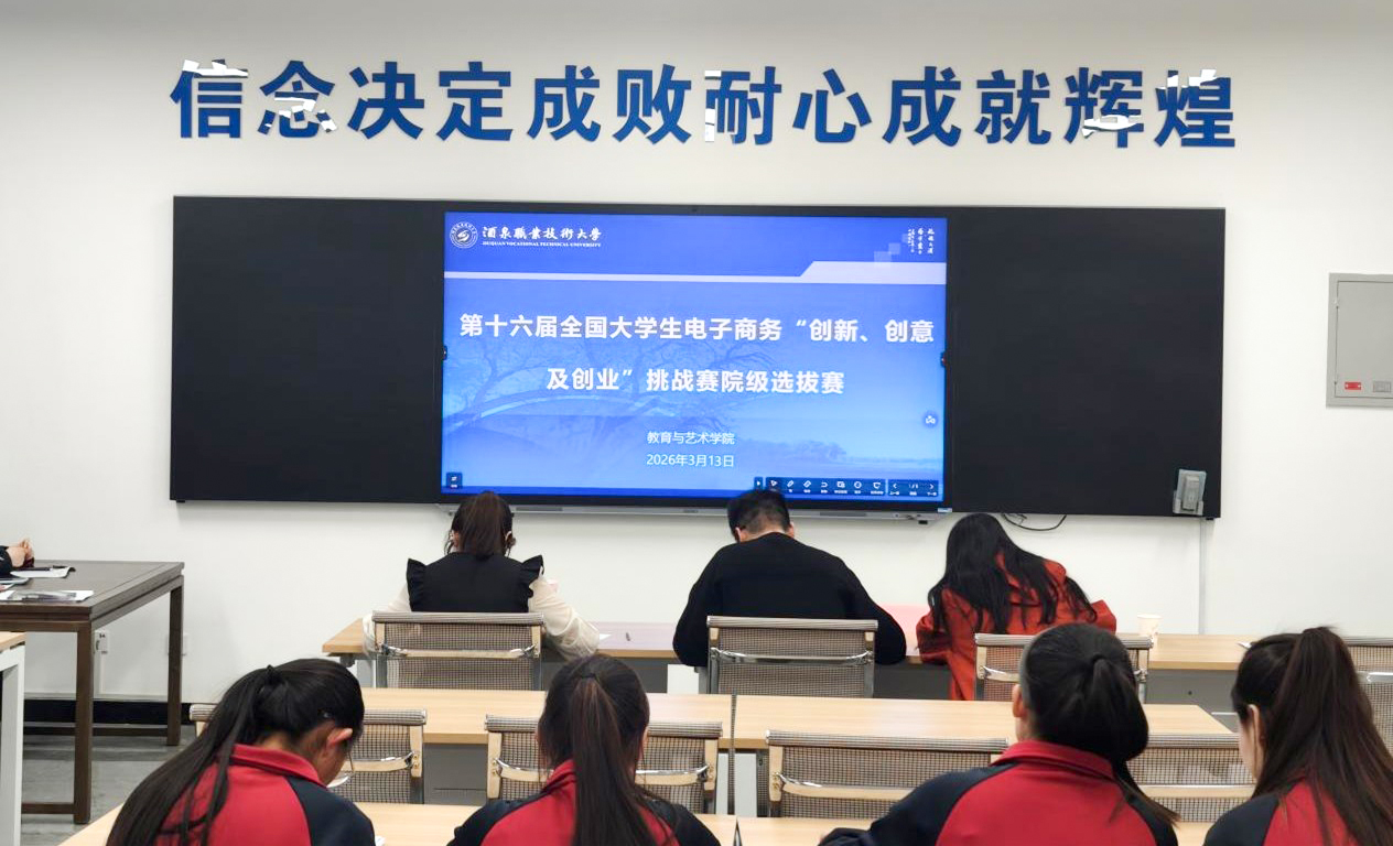 为全面落实高校创新创业教育改革要求,深入践行立德树人根本任务,着力激发学生创新意识、培育创意思维、提升创业实践能力,3月13日下午,教育与艺术学院于弘毅楼A307举办第十六届全国大学生电子商务“创新、创意及创业”挑战赛(以下简称“三创赛”)院级选拔赛。本次比赛特邀学院王彦杰、贾玉婷、雷玉婷三位专业教师担任评委,全程开展赛事评审工作,共同见证创意与创新的精彩交锋,助力学子锤炼过硬本领。