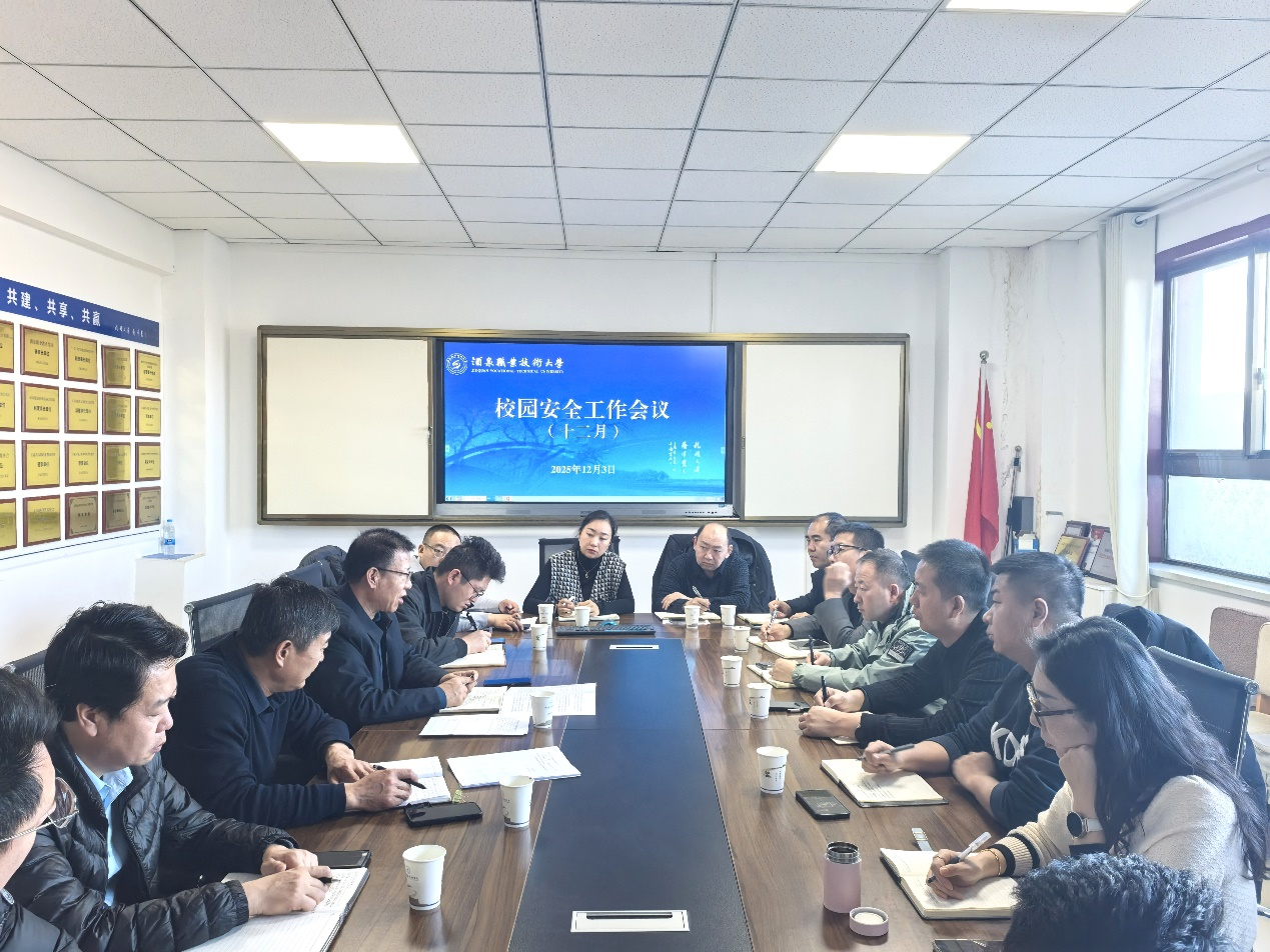 2025年12月3日上午,学校在行知楼二楼会议室召开校园安全工作会议。会议由学校党委委员、副校长王金明主持。学生工作部、教务处、团委、心理咨询与指导中心、创新创业学院负责人,各学院分管学生院领导参加会议。